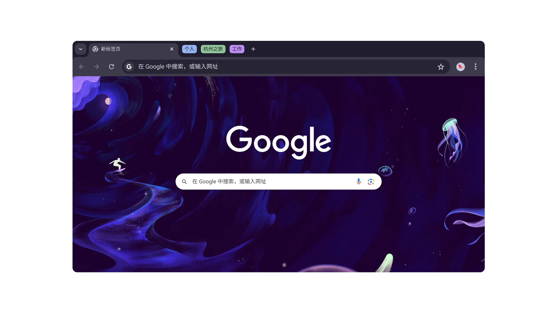 利用主题、深色模式和专为您打造的其他选项,让您的网络浏览器个性十足。